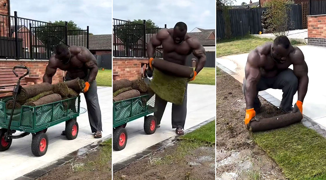 Samson Dauda is at present in coaching to defend his Mr Olympia title this October in Las Vegas, however whereas nonetheless at dwelling in England, the massive man is discovering loads of methods to burn some energy. In a latest IG reel, Dauda went again to grass roots, actually, as he laid some turf. “Backyard patio lastly accomplished,” wrote the proud Nigerian-British bodybuilder, proven finishing the job and looking out jacked. After all, this bodybuilder’s extra pure habitat is the twisted metal of the fitness center, so it’s nice to see that the present Mr ‘O’ could make positive factors in his backyard as properly.